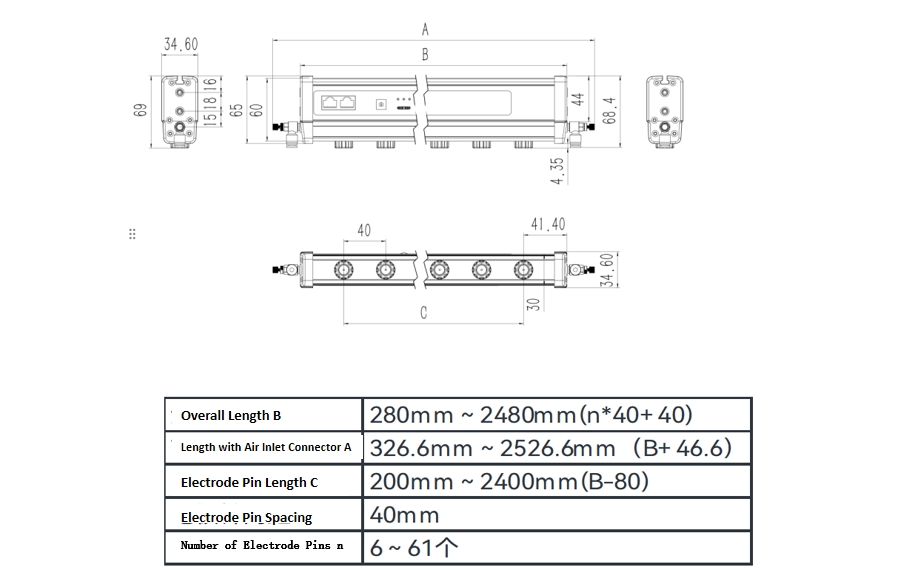 1      Adjustable positive and negative ion output frequency, suitable for different static elimination distances.