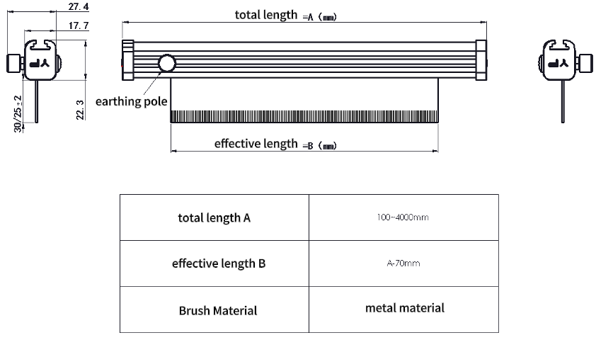 1 The resistance of a 1-meter-long static brush is R ≤ 1Ω, and its conductivity is more than 30 to 100 times higher than that of ordinary metal cloth.